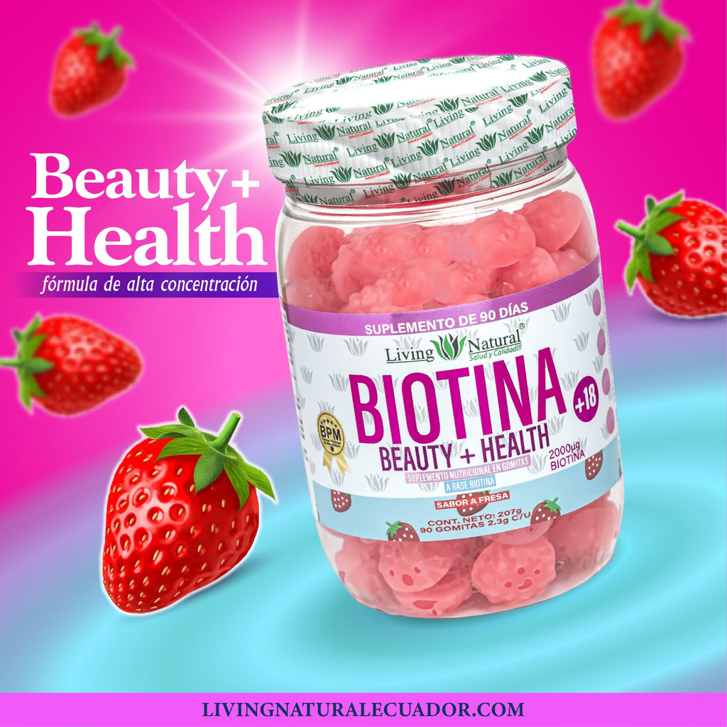 Apoya un hermoso cabello, piel brillante y uñas saludables: deliciosas gomitas con sabor a fresa que contienen biotina